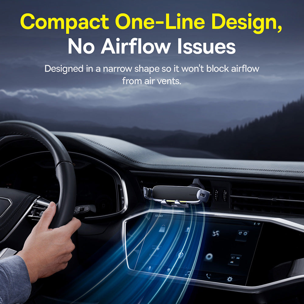 Baseus UltraControl is a smart car holder with an automatic gravitational clamping system that instantly secures your phone