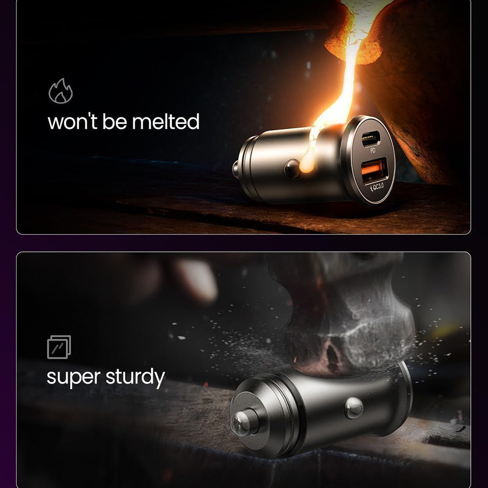 Made from aluminum alloy, this car charger efficiently dissipates heat, offering durability and safety in use.