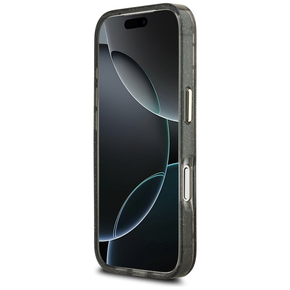 MagSafe Case for Apple iPhone 17 Pro, Guess, IML Metal Glitter Flowers Triangle, Black