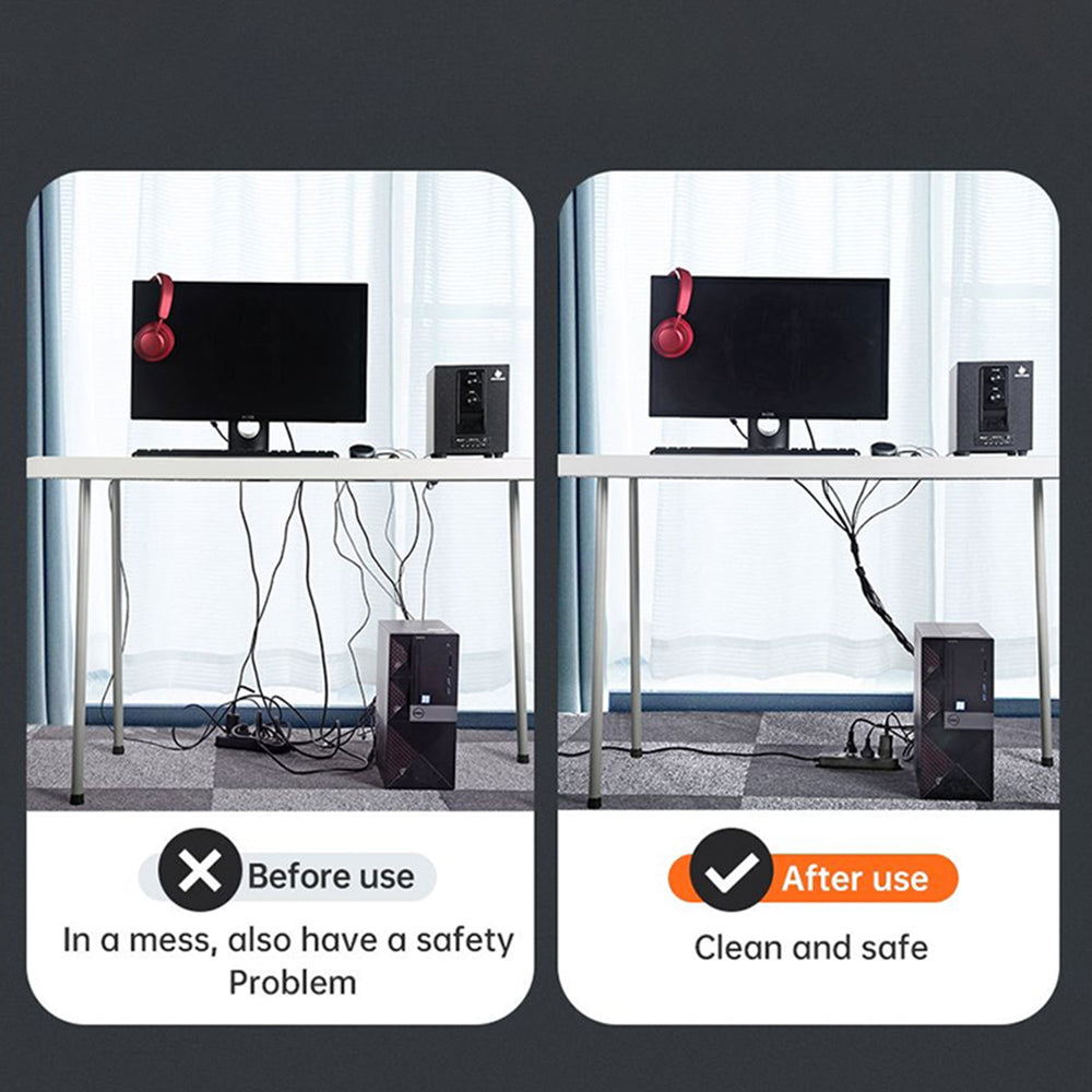 A practical solution for organizing cables, with adjustable length and easy reuse, ideal for maintaining an orderly space.