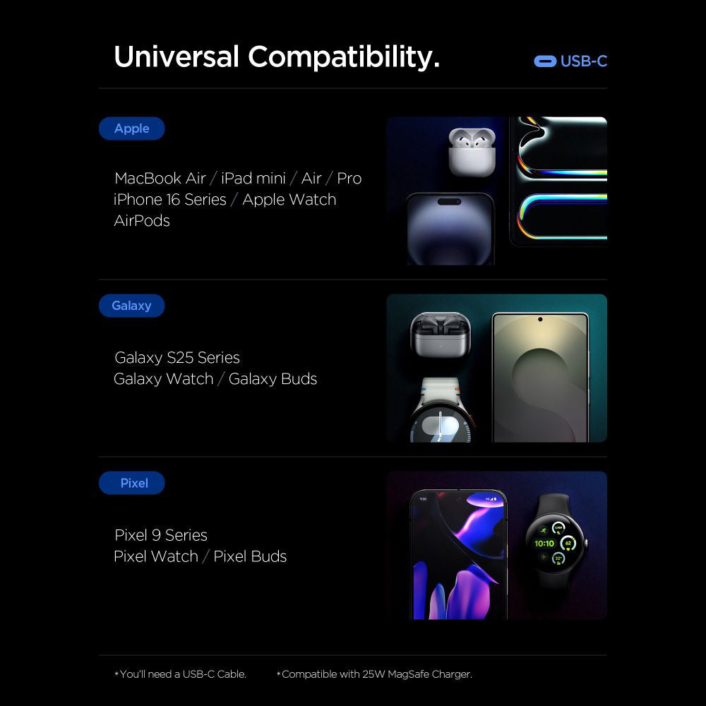 • Compatibility: devices with USB-C (universal, iOS and Android).