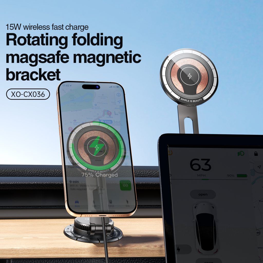 The XO Design CX036 Wireless Car Charger is a modern magnetic holder, designed for fast charging and convenient use while driving.