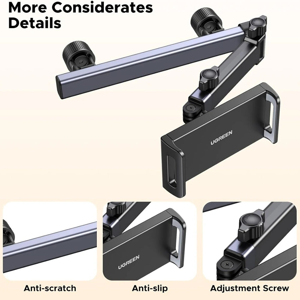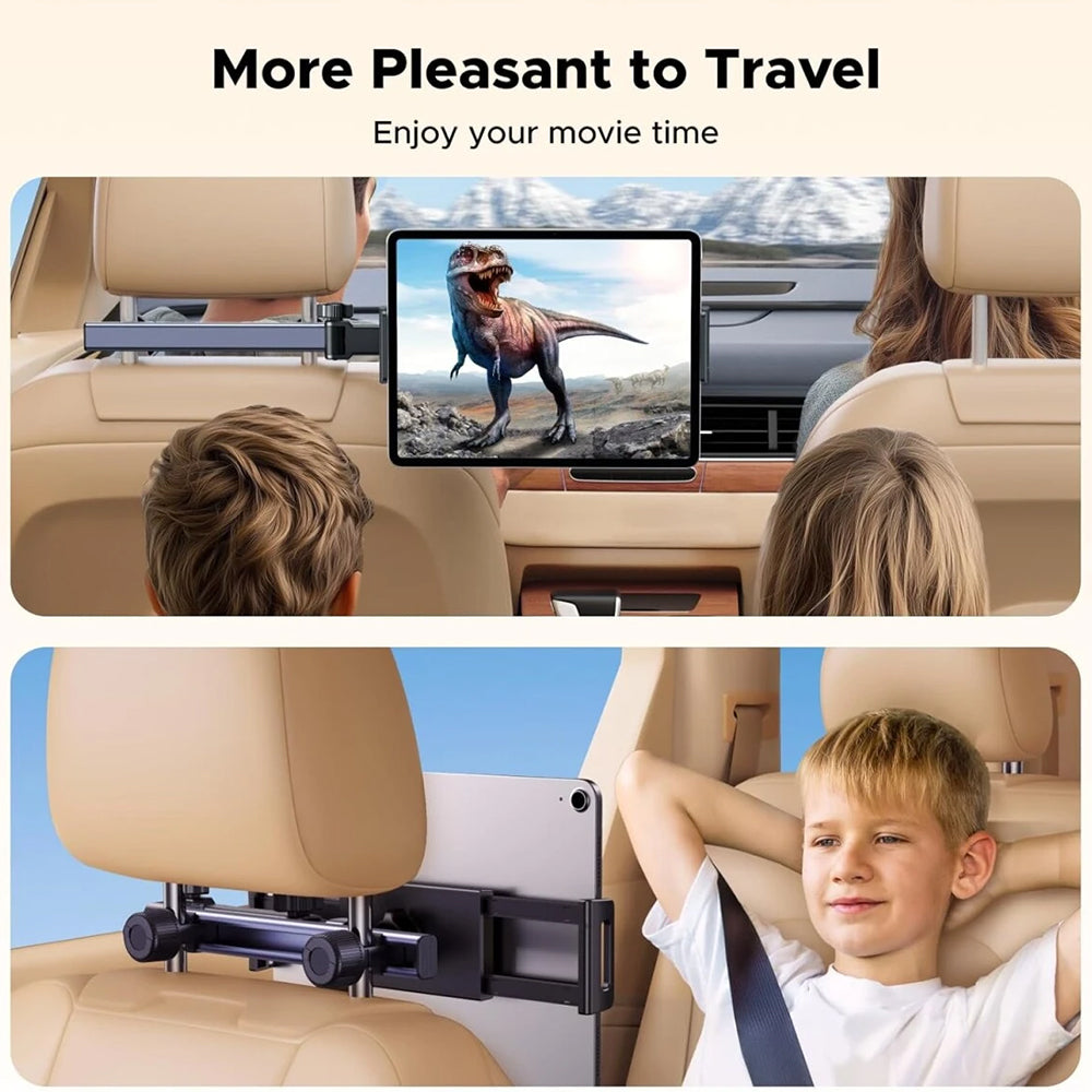 Kompatibel med enheder mellem 4.7'' og 9.8", med denne fleksible bilholder kan du se medieindhold under hele rejsen. Du kan justere synsvinklen takket være den justerbare arm, som kan forlænges og roteres 360 grader.