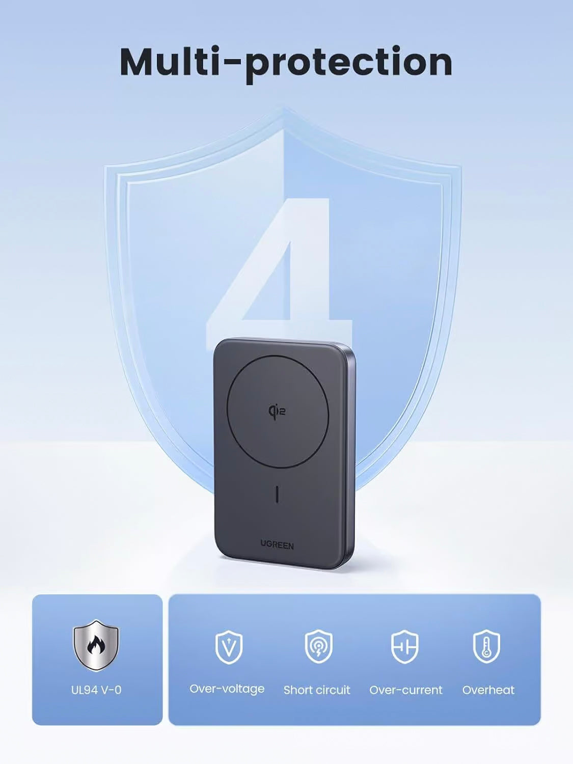 UGREEN PB761 er udstyret med Qi2-teknologi, som muliggør trådløs opladning op til 15W, dobbelt så meget som konventionelle MagSafe-opladere på 7,5W.