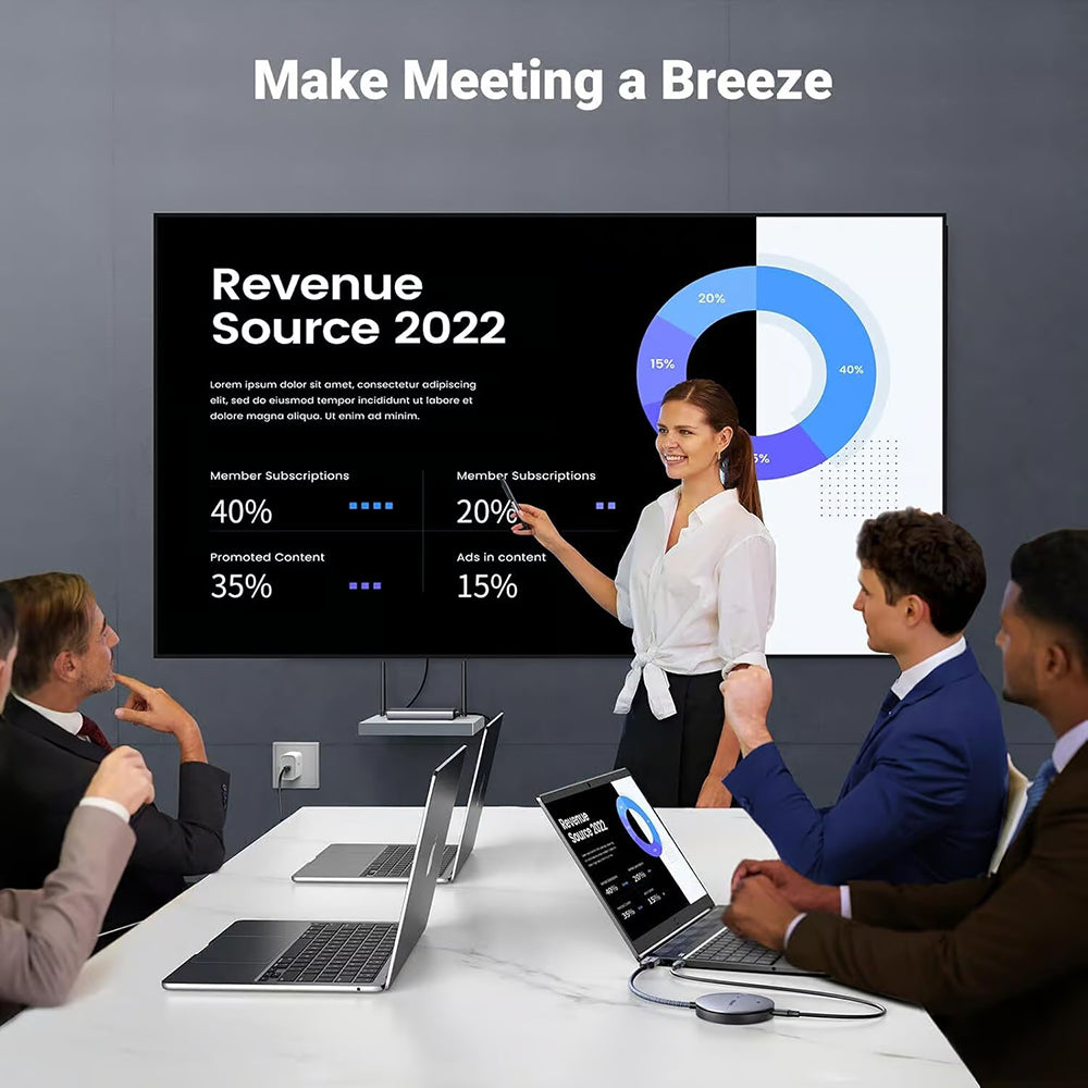 Med UGREEN CM586 kan du nyde en high-definition videooplevelse uden besværet med kabler. Sættet bestående af en sender og en modtager muliggør trådløs afspilning af 4K HDR-indhold, hvilket giver klare billeder, levende farver og perfekt synkroniseret lyd. Takket være 5 GHz trådløs teknologi sikrer extenderen en stabil og hurtig forbindelse med en transmissionsafstand på op til 50 meter i områder uden forhindringer. Ideel til konferencelokaler, uddannelsesmæssige præsentationer eller hjemmeunderholdning. UGREEN CM586-modellen understøtter samtidig brug af HDMI og VGA-udgange, hvilket betyder udvidet kompatibilitet med forskellige typer skærme og projektorer. Desuden tillader 3,5 mm lydudgangen direkte tilslutning til eksterne lydsystemer, hvilket giver maksimal fleksibilitet.