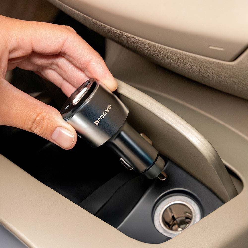 Indstil radiofrekvensen til 85.7FM og lyt til dine yndlingssange. Lange køreture vil ikke længere være kedelige med Proove-modulatoren og bilopladeren.