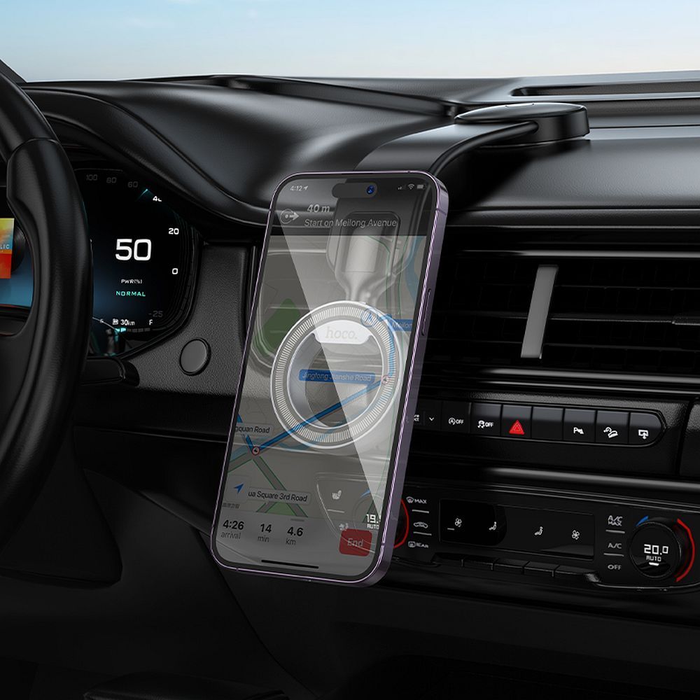 HOCO H71 er en robust magnetisk bilholder, ideel til sikker fastgørelse af telefonen på bilens instrumentbræt. Med et minimalistisk design og en kraftig magnet,