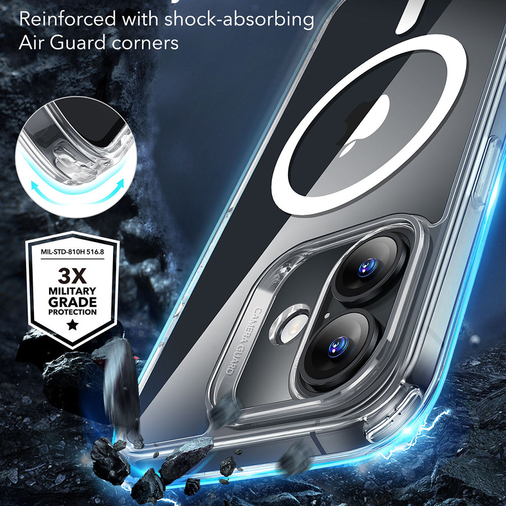 Det stive polycarbonat bøjer ikke under tryk fra stød, deres kraft bliver opløst før det kan skade din telefon.