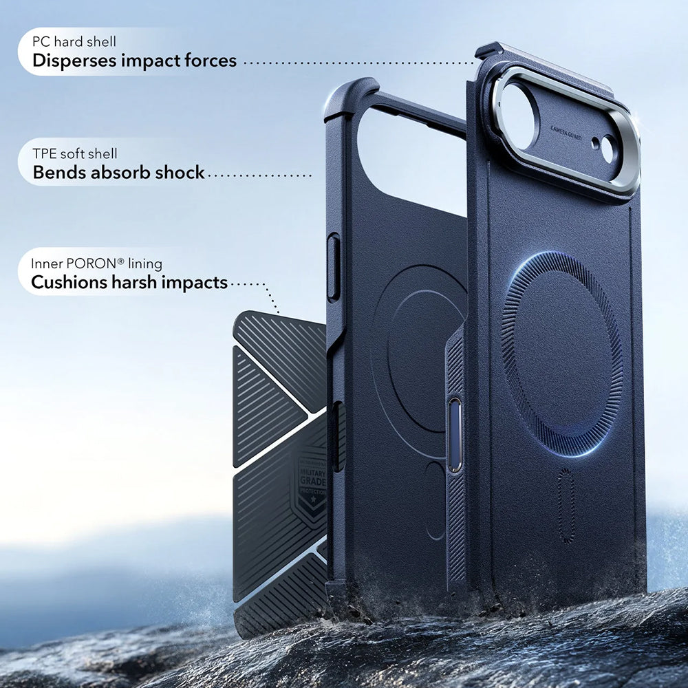 Foring, TPU og polycarbonat. Disse er de tre materialer, der udgør grundlaget for ESR beskyttelsescoveret. De bestemmer både coverets holdbarhed og den behagelige tekstur.