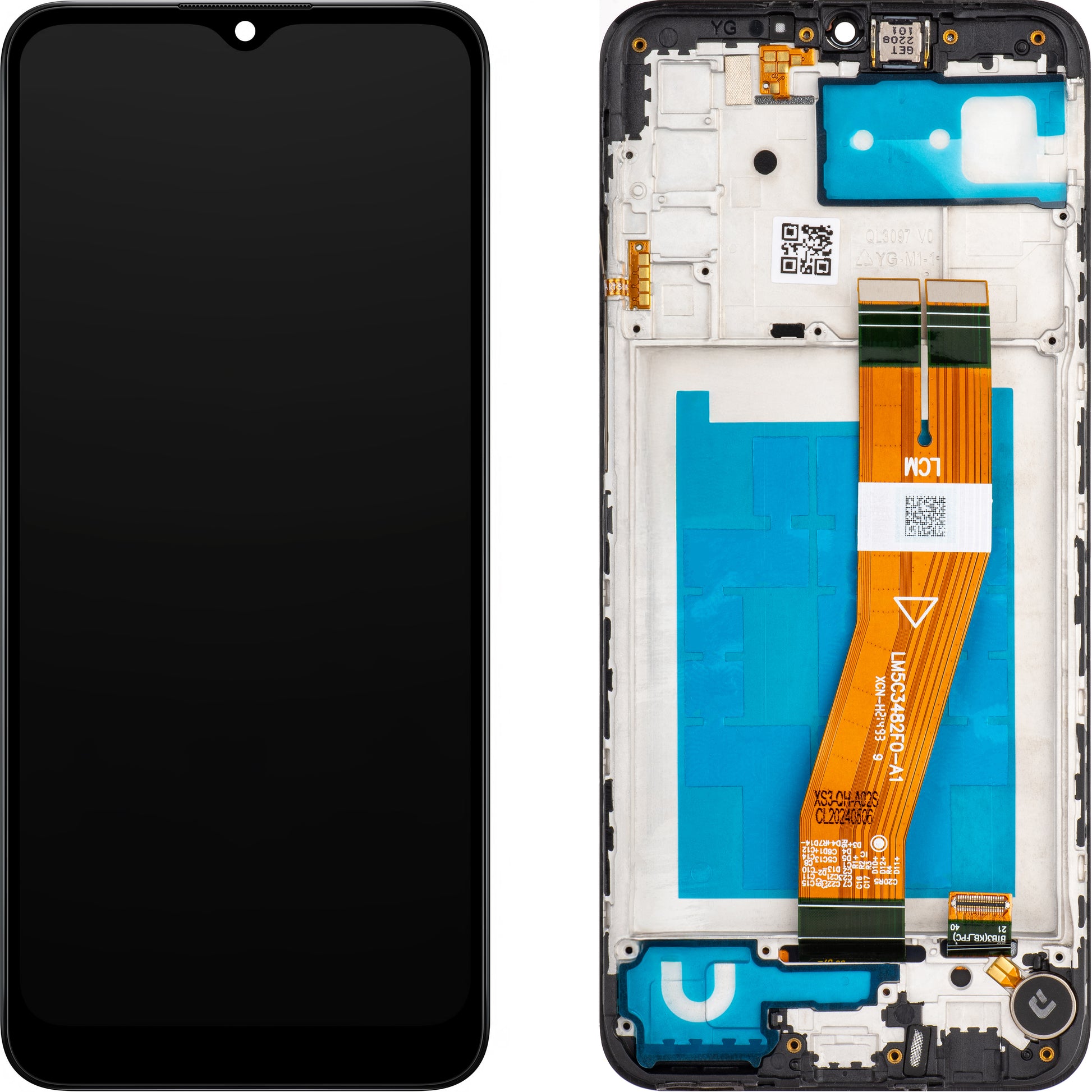 Displaymodulet er udstyret med en ramme, højttaler, vibrationsmotor og sideknapper med mikrokontakt.