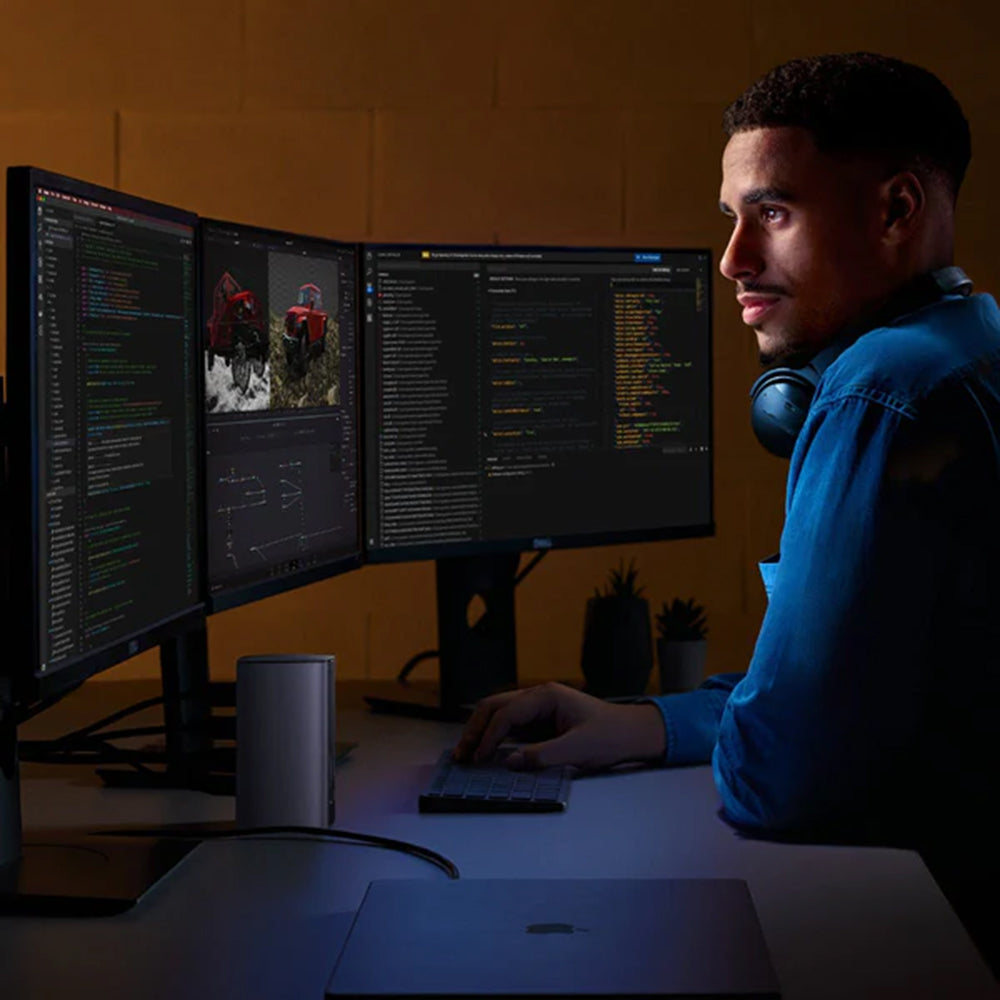 Fremstillet af premium aluminium, kombinerer den elegance med holdbarhed. Den har 3 video outputs (HDMI 2.1 8K, HDMI 2.0 4K, DisplayPort 1.2 4K),