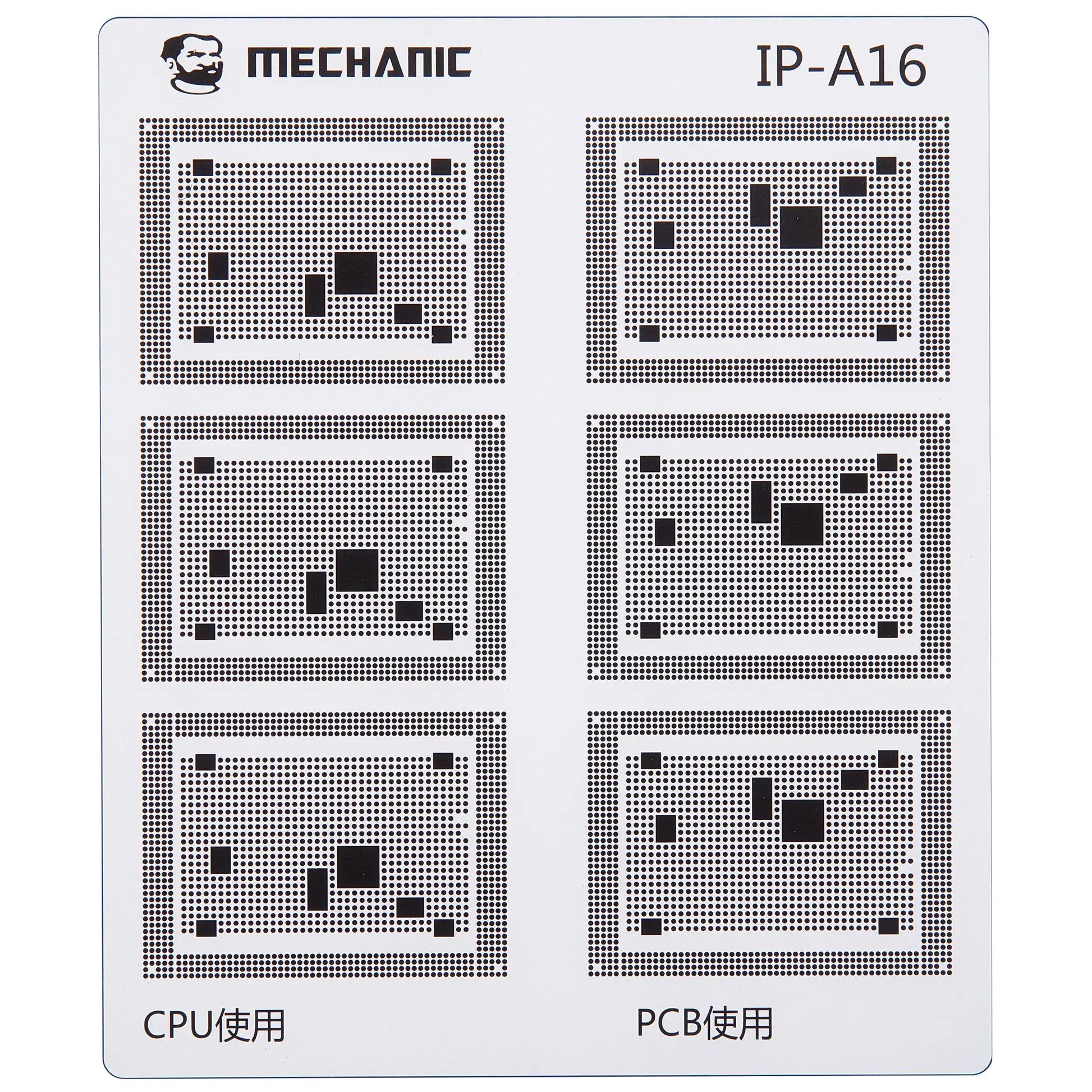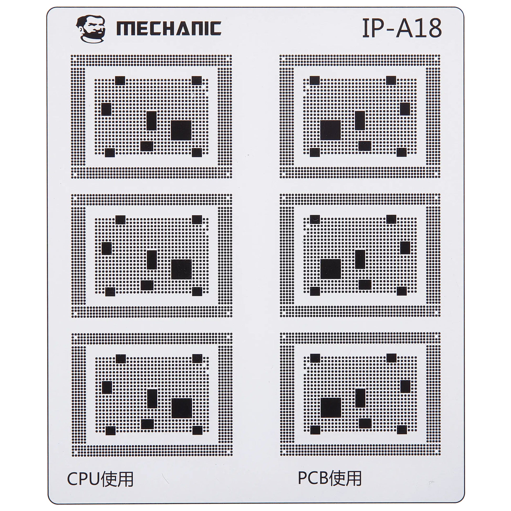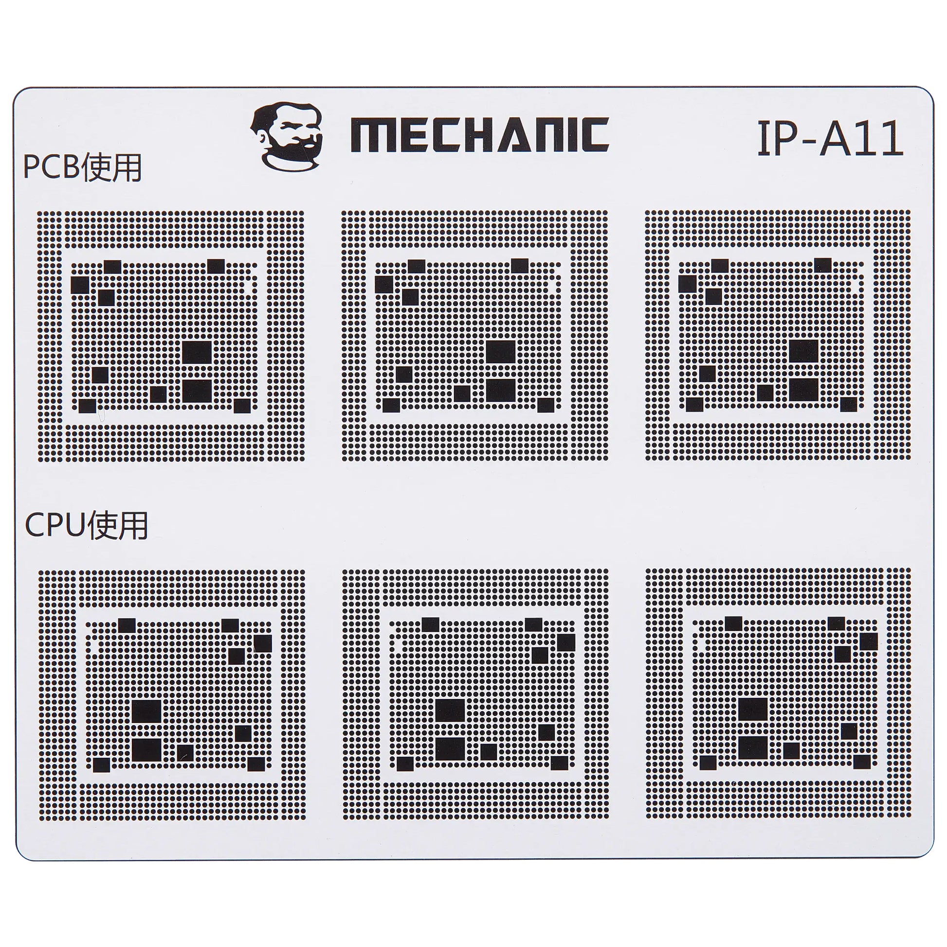 Isoler banerne på hovedkortet med maksimal præcision ved hjælp af den professionelle Mechanic COM80 skabelon, dedikeret til CPU reparationer på Apple iPhone 6 - 16 serien.