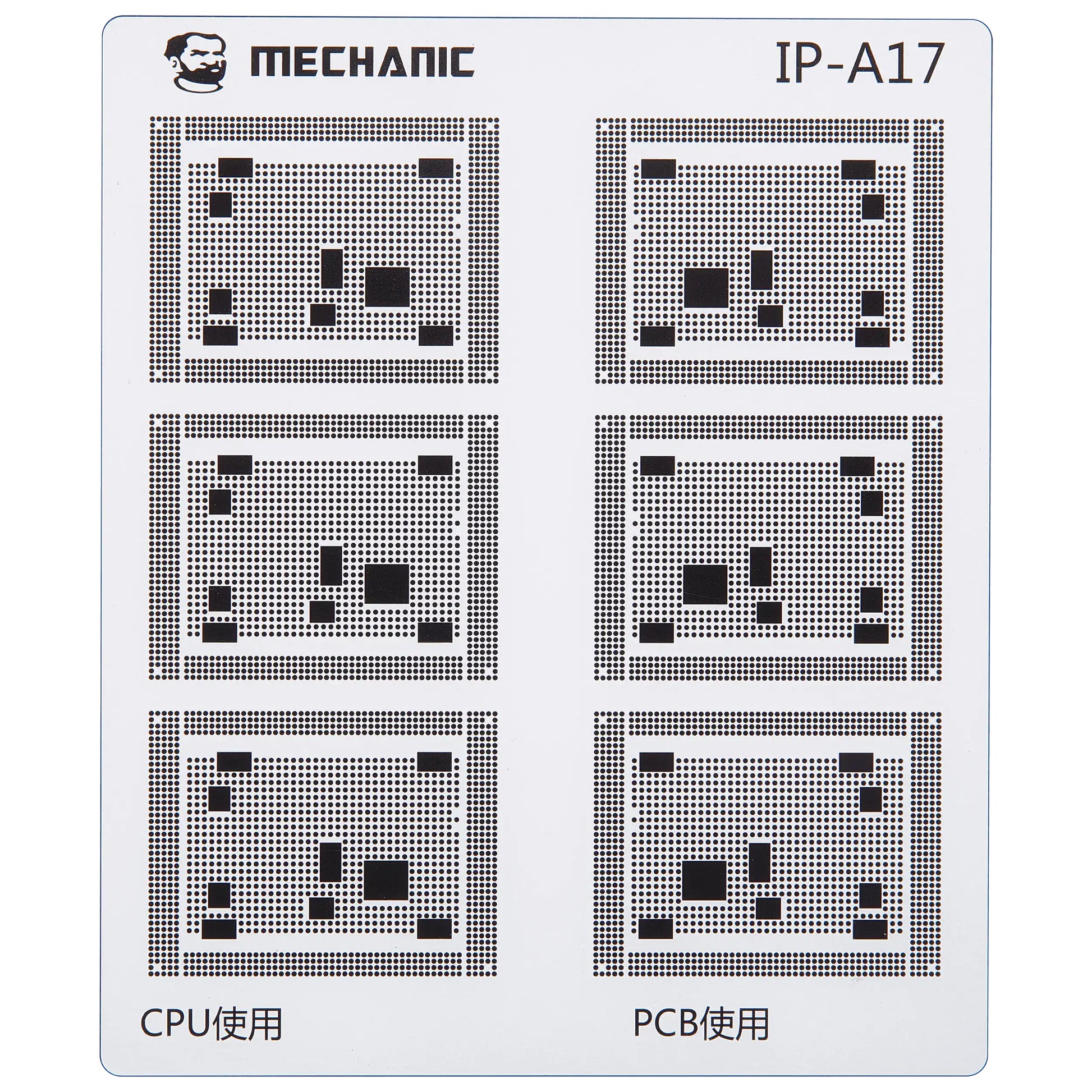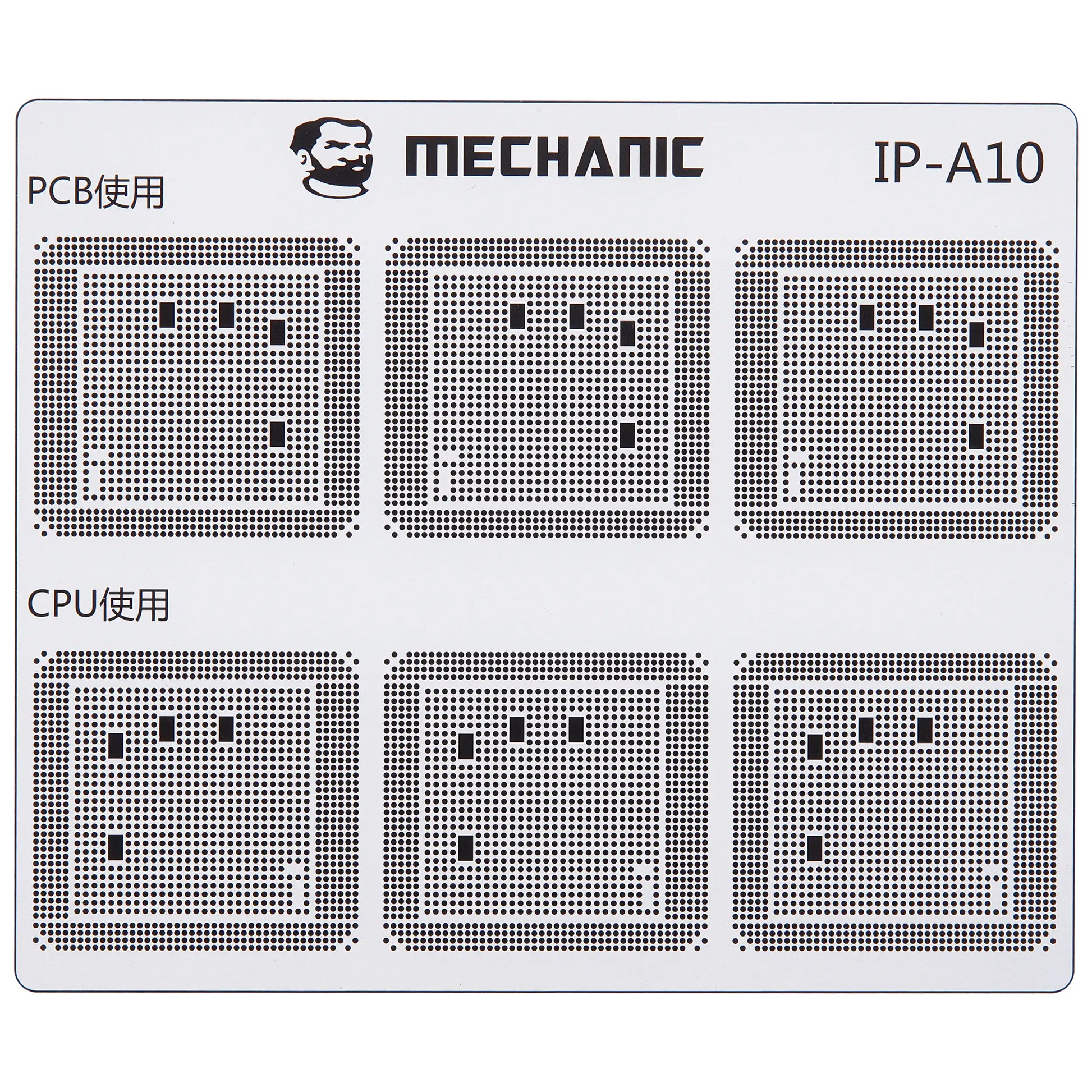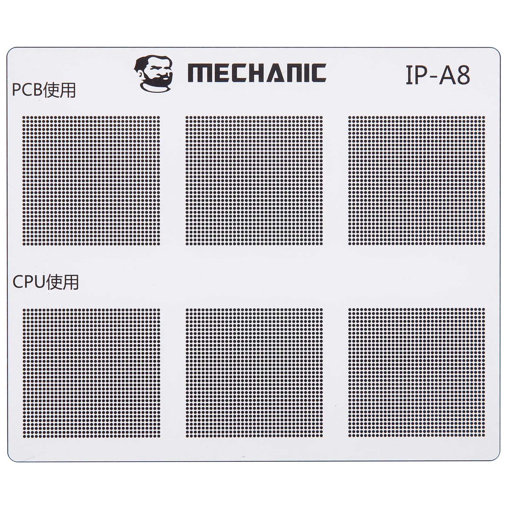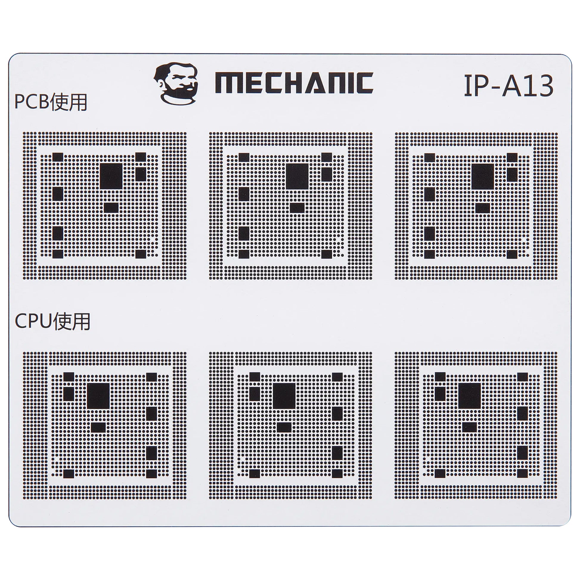 Isoler banerne på hovedkortet med maksimal præcision ved hjælp af den professionelle Mechanic COM80 skabelon, dedikeret til CPU reparationer på Apple iPhone 6 - 16 serien.