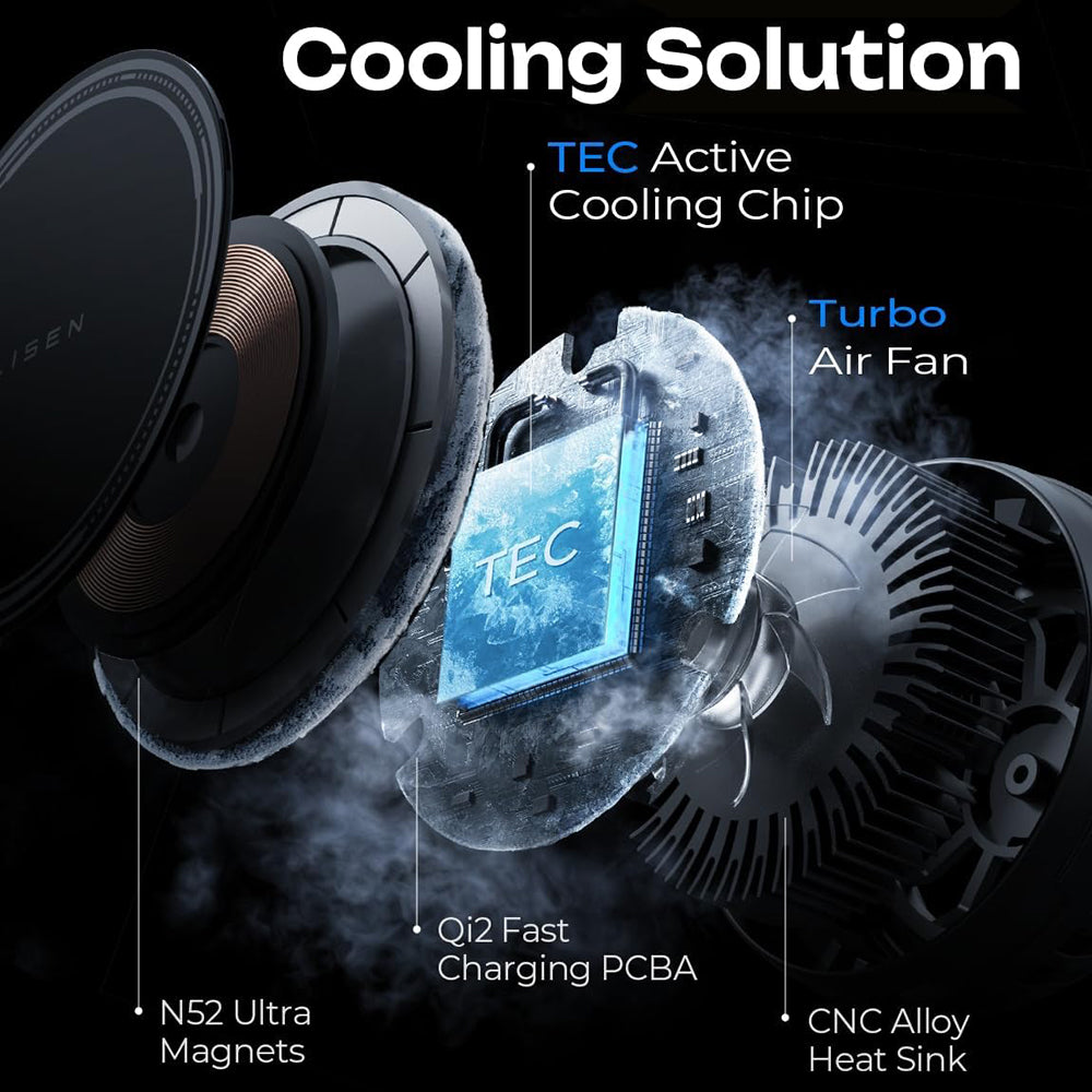 Det aktive kølesystem holder telefonens optimale temperatur under Qi2-opladning, effektivt spreder den genererede varme. Det er tid til at rejse sammen med Lisen-passageren!